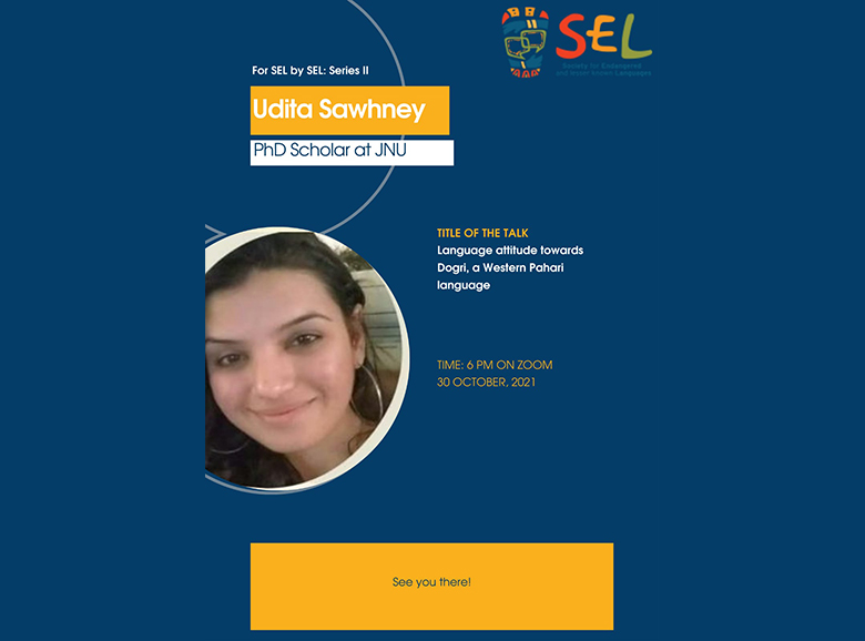 A language from the newly formed 5th language family of India, Tai Khamti was the topic of discussion in Dr Bishakha Das’s work. The status of Dogari, a western Pahari language was discussed by Udita Sawhney in her presentation. A large number of SEL members benefited by these presentations.